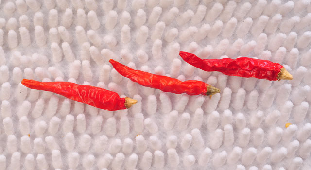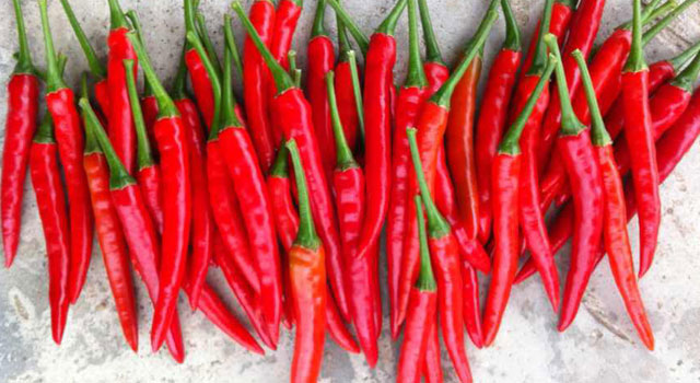 口感:艳红辣椒因其辣度浓厚,经常用做辛辣副食品的调料及有一定辣度菜肴的佐料。