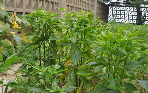 2、剪枝部位。合理的剪枝部位应在4个大枝上。1株辣椒一般有4个大枝,当进入高温季节后,4个大枝扩生出8个侧枝。这时枝繁叶茂影响通风透光,不仅导致果小,而且易掉果、烂果,还会诱发各种病害。既使产量降低,又使品质变劣。如及时剪掉这8个侧枝,就可使肥力集中于4个大枝,株间的通风条件得到改善,减少病害发生,促使辣椒多结果、结大果。